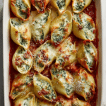 There is something so comforting about pulling a bubbling dish of stuffed pasta out of the oven, especially when the kitchen smells like garlic, tomato sauce, and melted cheese. These shells are tender, creamy, and packed with that cozy spinach and ricotta filling that feels both hearty and a little special. Trust me, you’re going to love this, because every bite brings together soft pasta, rich filling, and saucy cheesy goodness in the best possible way.