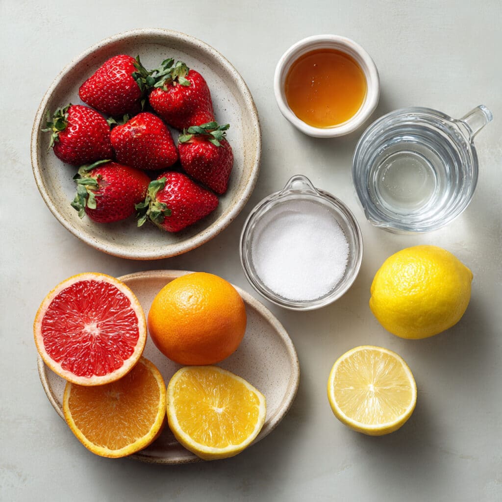 Strawberries: These juicy berries bring not only sweetness but also a vibrant pink color and a mild floral note that balances the citrus.