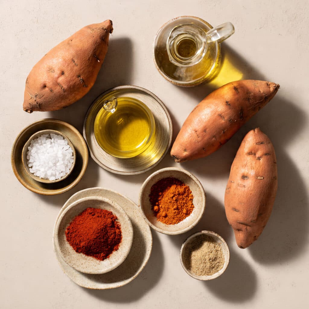 Sweet Potatoes: Naturally sweet and rich in color, they crisp beautifully in the oven while keeping a soft interior.