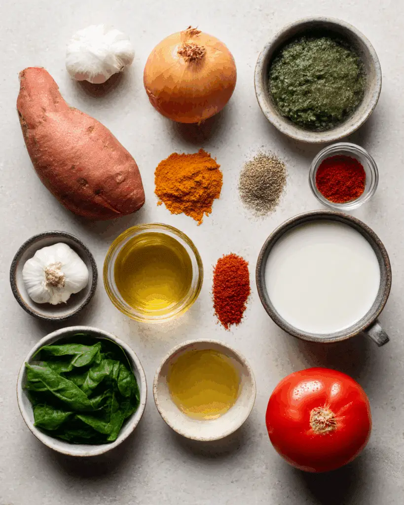 - Sweet Potatoes: 2 large, peeled and cubed – Soft, sweet base of the dish.