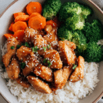 There is something deeply comforting about a warm bowl filled with tender chicken, fluffy rice, and a glossy sauce that clings to every bite. This dish is one of those meals that feels like a reward at the end of a long day. Sweet, savory, and just a little sticky, it brings together simple ingredients in a way that feels both cozy and exciting. Trust me, you’re going to love this, because it hits that perfect balance between homemade comfort and takeout style satisfaction.