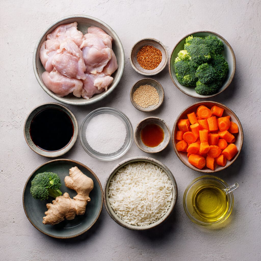 The magic here is contrast. The rice stays soft and fluffy, the vegetables bring a gentle crunch, and the chicken is tender with a sticky glaze. As the sauce reduces, it becomes richer and slightly caramelized, coating every element without overpowering them.