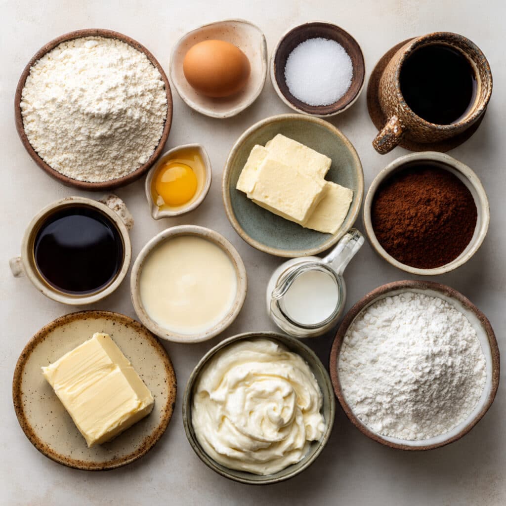 - Espresso or Strong Coffee: ½ cup (cooled) – For soaking or drizzling.