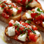 There is something quietly magical about simple food done right, and this Tomato & Mozzarella Bruschetta is exactly that. Crisp toasted bread meets juicy tomatoes, creamy mozzarella, and fragrant basil in a way that feels both rustic and elegant. The first bite gives you crunch, then softness, then that bright burst of freshness. Trust me, you’re going to love this.