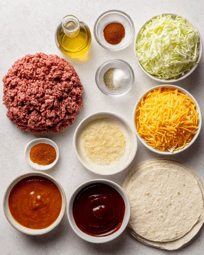 These tacos are all about layers — crispy tortilla on one side, juicy caramelized beef on the other, gooey cheese, sweet-smoky sauce, and bright, fresh toppings. Each bite has crunch, chew, and melt. The lime and onions cut the richness just right, while jalapeños bring the kick.