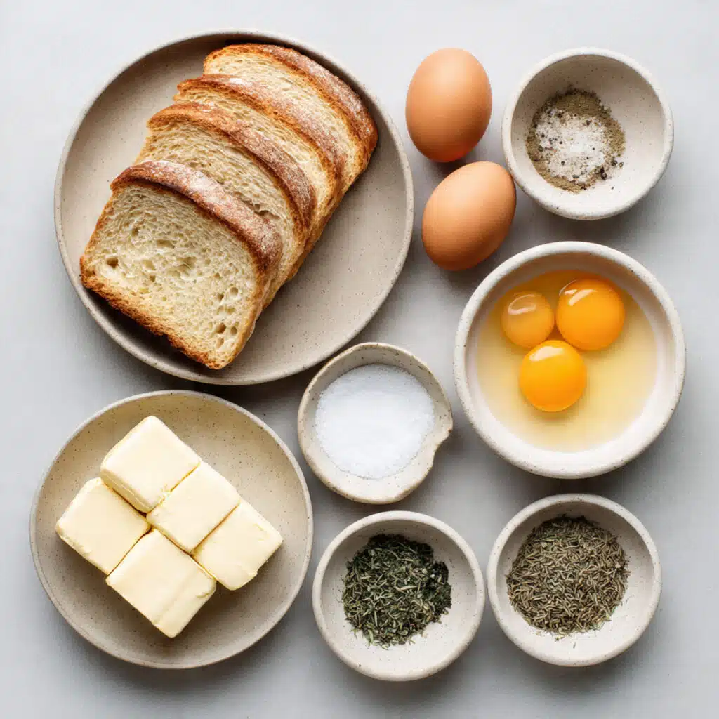 - Bread slices: 2 slices, thick cut, this holds the egg and gives structure